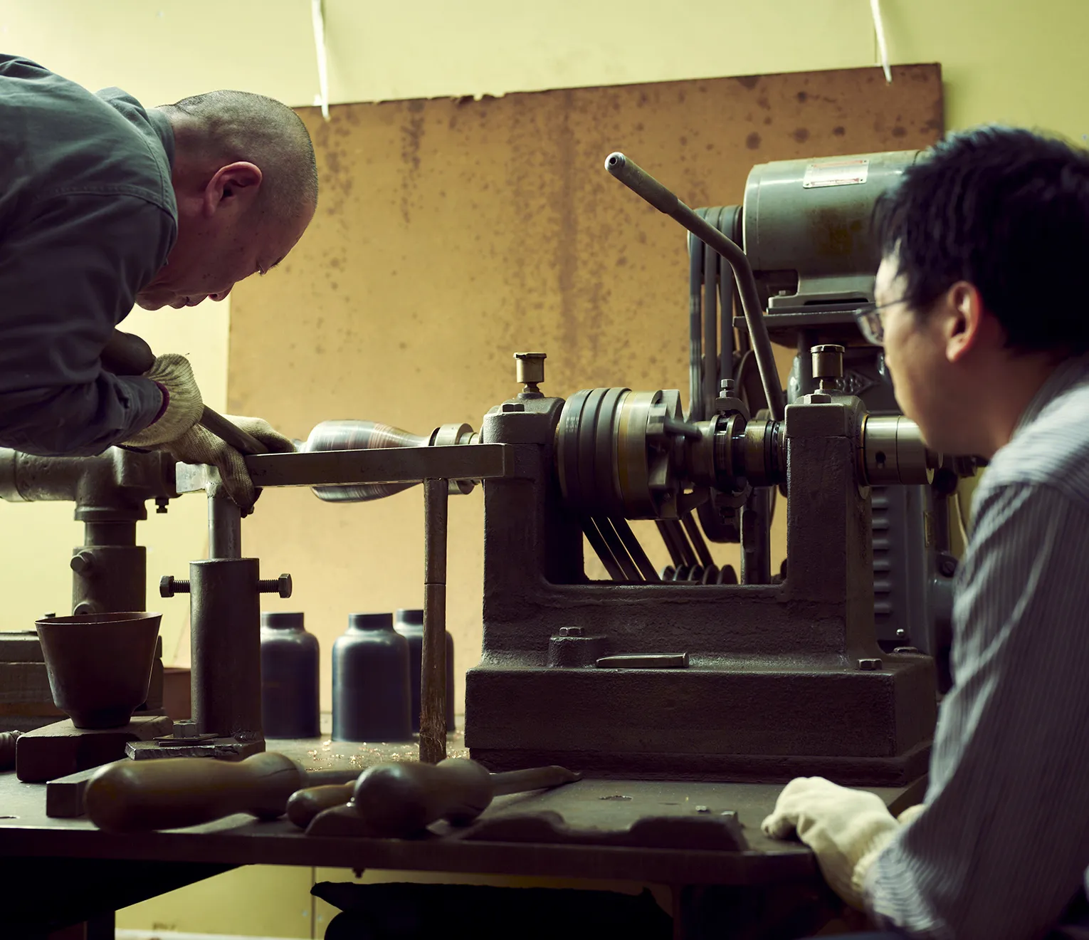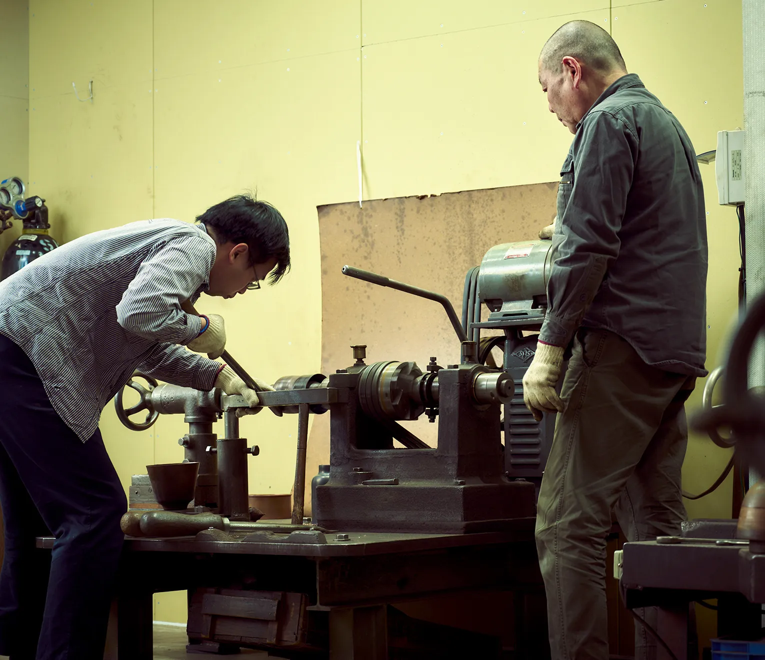 「70年ぐらいヘラ絞りをやっていた父親は、とにかく木型を削るのが速かった。まだまだ叶わないが、追いつきたい」と、西浦が見ている背中を教えてくれた。師が磨き続ける技術は、やがて廣井に継承されていくだろう。